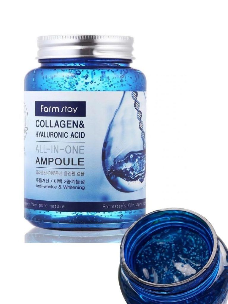 H Collagen & Hyaluronic Acid All-In-One Ampoule είναι μια ισχυρή αντιγηραντική αμπούλα all-in-one με κολλαγόνο και υαλουρονικό οξύ από τη Farm stay. Περιλαμβάνει συστατικά που στοχεύουν στην ενυδάτωση και την ενδυνάμωση του δέρματος, κατάλληλη για την εξομάλυνση των ρυτίδων και τη μείωση της μελάγχρωσης.