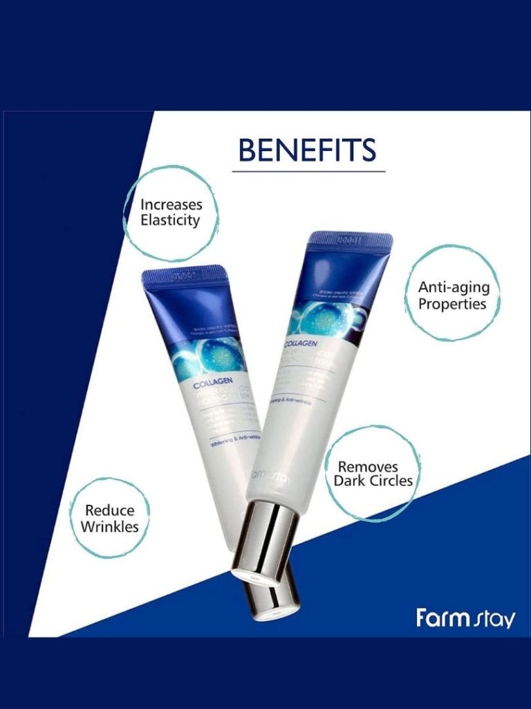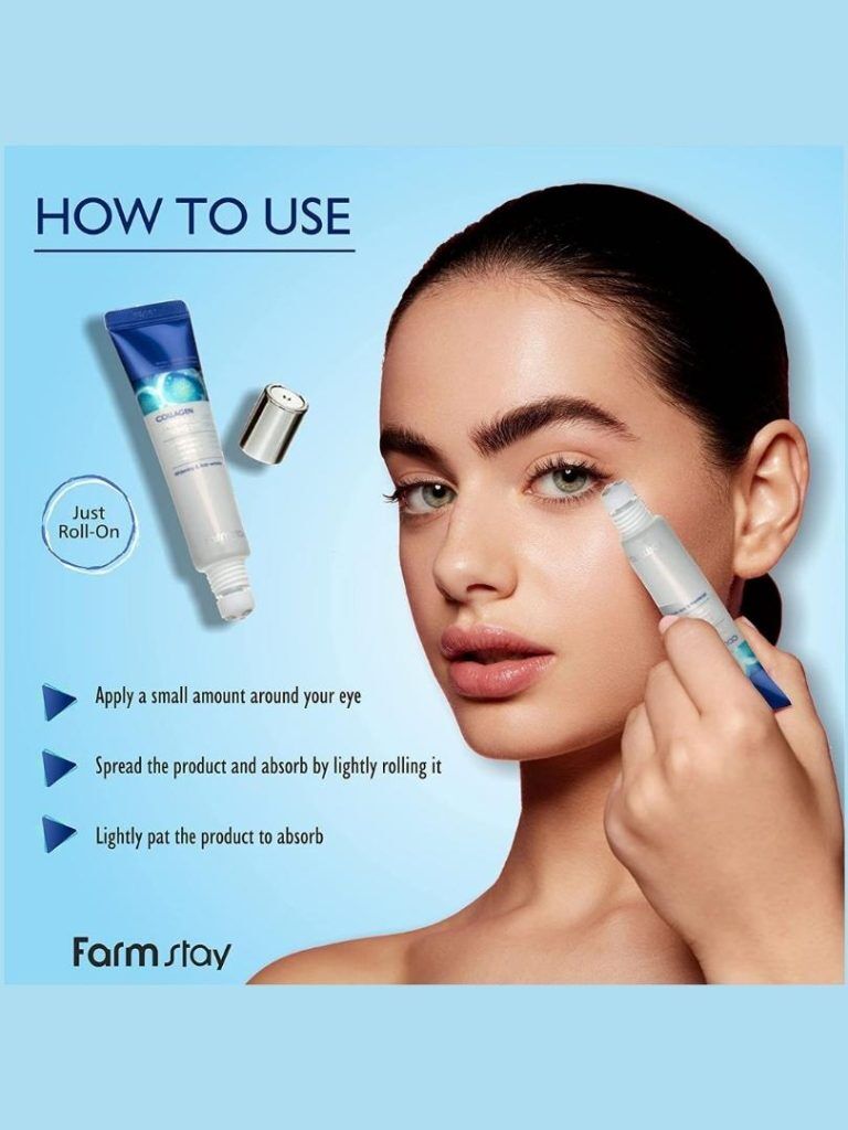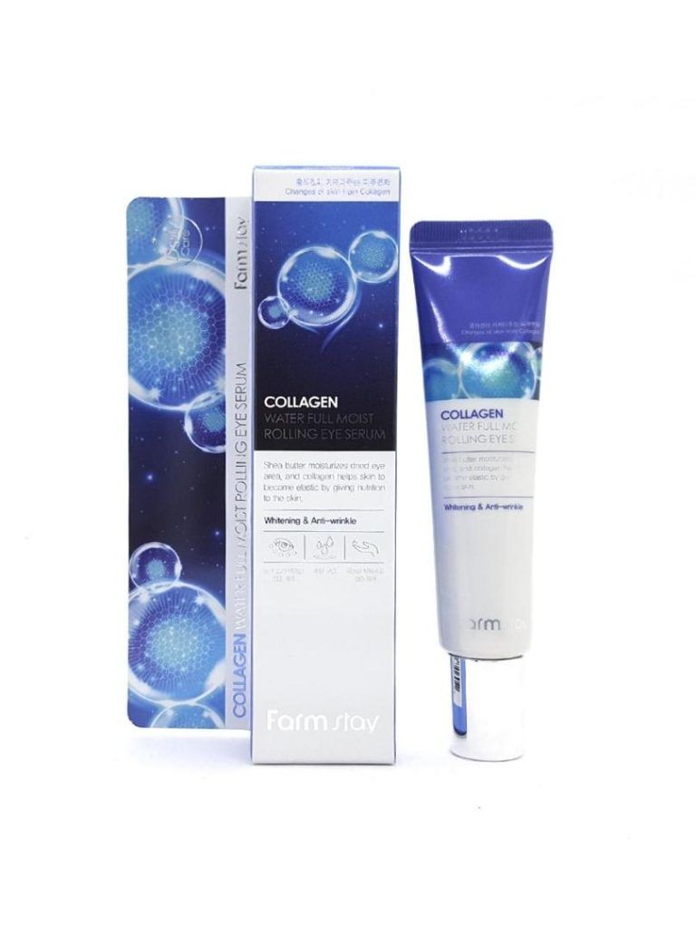 To Farmstay Collagen Water Full Moist Rolling Eye Serum είναι ένας εξαιρετικά συμπυκνωμένος ορός που θρέφει απαλά την ευαίσθητη περιοχή των ματιών. Λευκαίνει, λειαίνει και ενυδατώνει την περιοχή των ματιών και την περιοχή γύρω από το στόμα. Παρέχει υψηλής συγκέντρωσης αντιγηραντικά συστατικά και 3 κυλίνδρους που κάνουν απαλό μασάζ βοηθώντας στην τόνωση της κυκλοφορίας του αίματος. Το δέρμα μας στην περιοχή των ματιών είναι ιδιαιτέρως λεπτό και οι ρυτίδες κάνουν την εμφάνιση τους πιο γρήγορα σε σχέση με το υπόλοιπο πρόσωπο. Το δέρμα γύρω από τα μάτια είναι πιο επιρρεπές σε ξηρότητα και κατέπέκταση στην εμφάνιση των ρυτίδων. Η ενυδάτωση κάνοντας μασάζ σε αυτήν την περιοχή του δέρματος θα βοηθήσει την κυκλοφορία του αίματος και θα αυξήσει την ελαστικότητα.