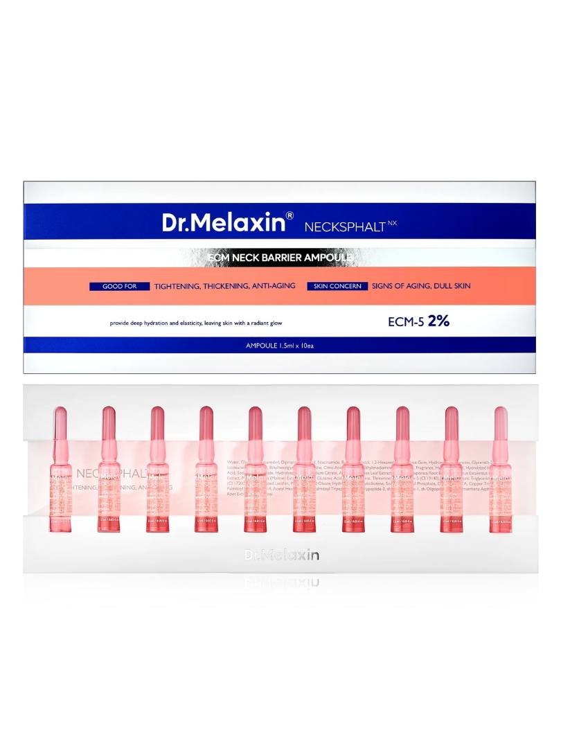 Το Dr.Melaxin Necksphalt ECM Ceramide Neck Serum είναι ένα σετ ορών με φόρμουλα ειδικά σχεδιασμένη για την περιοχή του λαιμού και ενισχύει τη σύσφιξη, την λείανση των ρυτίδων και την ενυδάτωση. Στοχεύει στην εξομάλυνση της υφής της επιδερμίδας και στην αναπλήρωση της χαμένης ελαστικότητας.