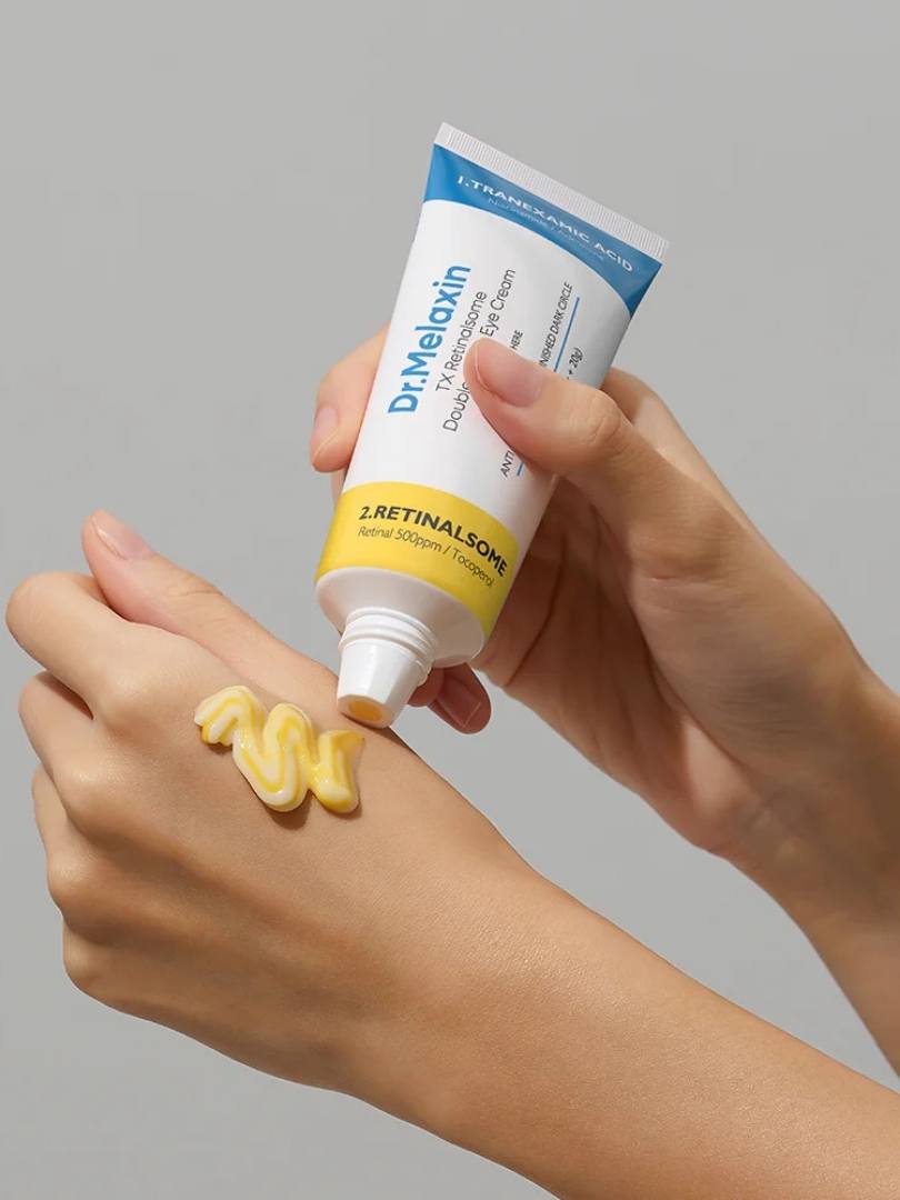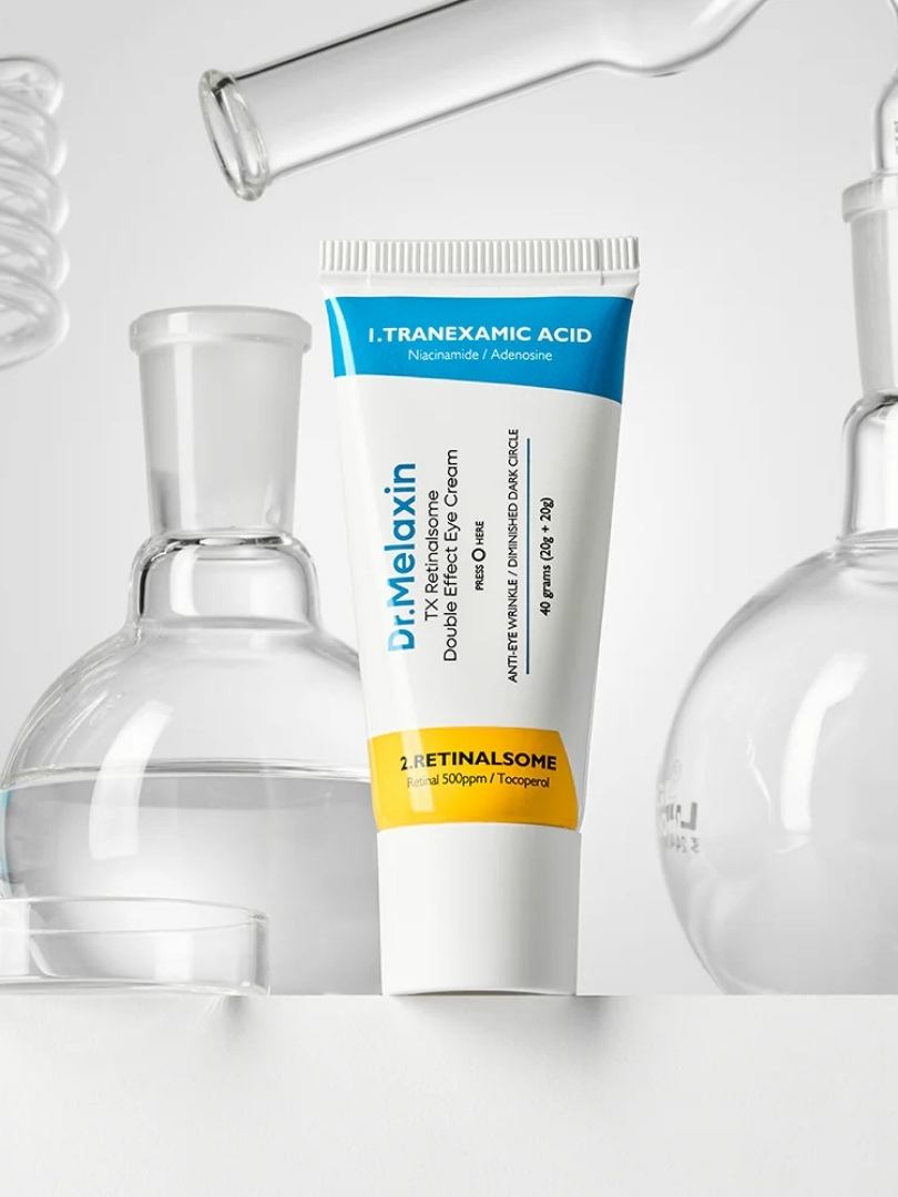 Η Dr.Melaxin TX-Retinalsome Double Effect Eye Cream είναι μια ξεχωριστή πρόταση στην περιποίηση της περιοχής των ματιών, με πλούσια ενυδατική υφή και αποδεδειγμένα αποτελέσματα. Η σύσταση της είναι διφασική, καθώς αποτελείται από ένα μέρος κρέμας με τρανεξαμικό οξύ για φωτεινότητα και ένα μέρος κρέμας-τζελ με ρετινάλη για αντιγήρανση.