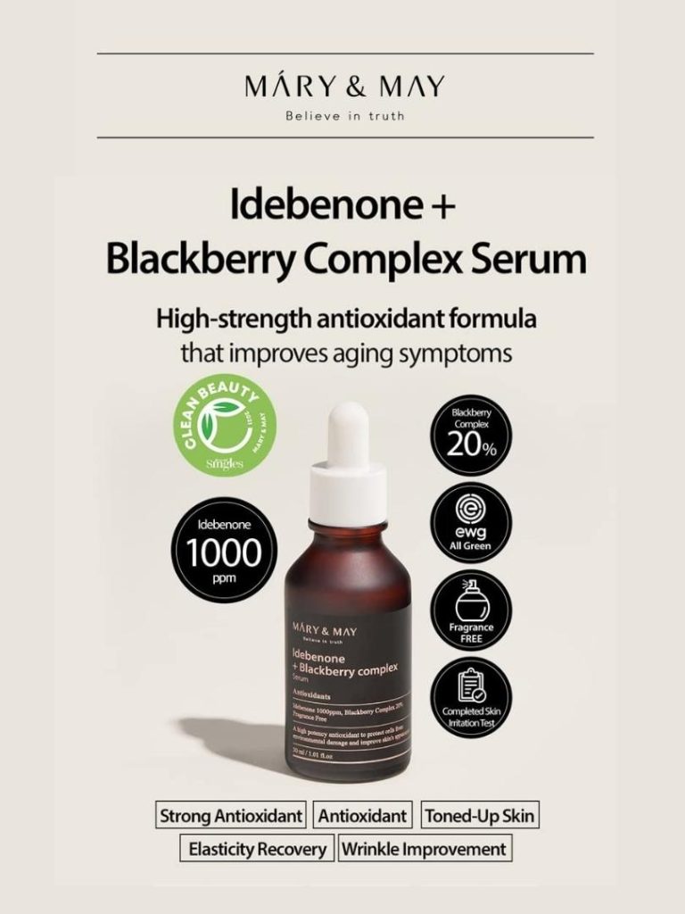 Βήματα ρουτίνας ομορφιάς: Έλαιο ή βάλσαμο καθαρισμού -> Αφρός καθαρισμού -> Toner ->Mary & May Idebenone + Blackberry Complex Serum-> Ενυδάτωση-> Αντιηλιακό (μόνο κατά την πρωινή ρουτίνα)