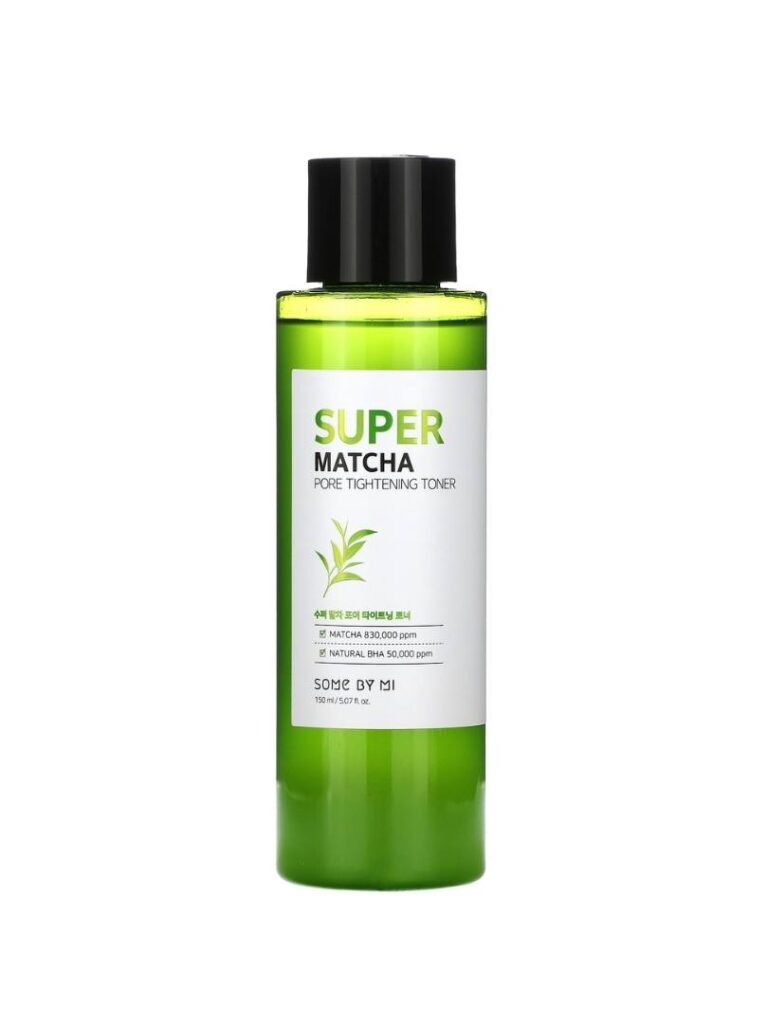 Ζήστε την εμπειρία του Super Matcha Toner, ενός καθαριστικού πόρων που αφαιρεί το σμήγμα και τα υπολείμματα από τους πόρους και μειώνει τους διογκωμένους πόρους. Το toner με matcha από την Some By Mi βοηθάει το δέρμα να είναι καθαρό, λείο και ομοιόμορφο. Το 83% του νερού Matcha συμπιέζει τους πόρους, ενώ η φυσική προέλευση BHA καθαρίζει τις μαύρες και τις λευκές κεφαλές τους. Ένα πατενταρισμένο συστατικό, το Sebum Controller Powder ™ απορροφά το περιττό σμήγμα και ελέγχει αποτελεσματικά την παραγωγή του.