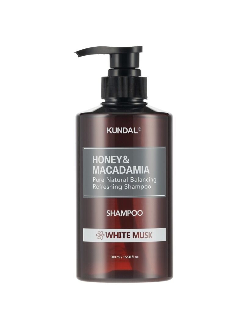 Το Kundal Honey & Macadamia Pure Natural Balancing Refreshing Shampoo περιέχει 46 εκχυλίσματα και έλαια, προσφέροντας απαλή και αποτελεσματική καθαριότητα στα μαλλιά.