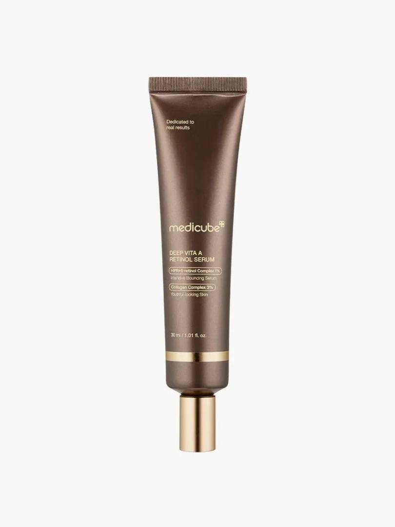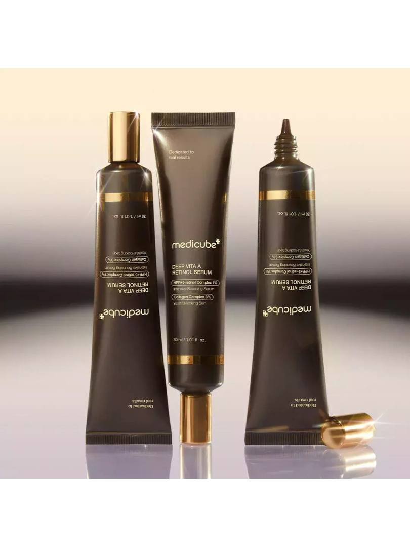 Ο Medicube Deep Vita A Retinol Serum είναι ένας ορός ρετινόλης 4ης γενιάς, σχεδιασμένος για να βοηθά στην μείωση των ρυτίδων, την εξομάλυνση των δυσχρωμιών και την ανομοιόμορφη υφή της επιδερμίδας. Είναι ενισχυμένος με παράγωγα ρετινόλης και θρεπτικά έλαια προκειμένου να θρέφει το δέρμα καθώς παράλληλα παρέχει αντιρυτιδική δράση. Περιέχει επίσης υδρολυμένο κολλαγόνο και βητα-γλυκανη που προσφέρουν ελαστικότητα και αποκαθιστούν τα επίπεδα υγρασίας του δέρματος.