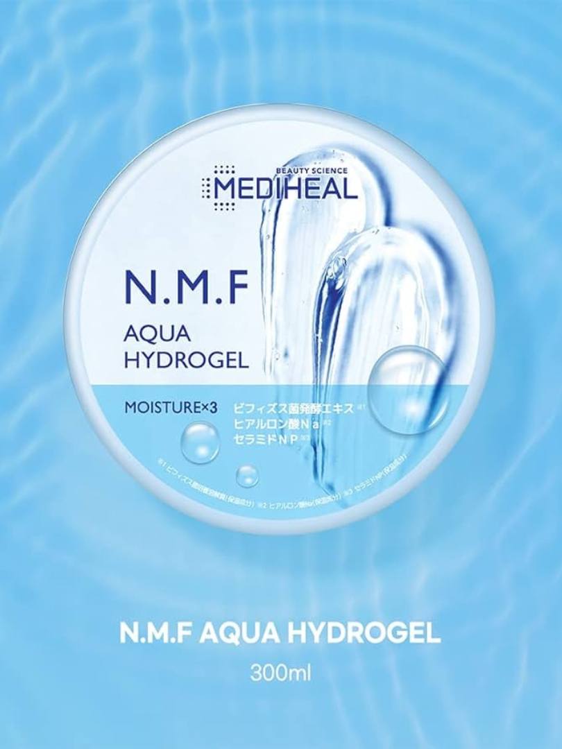 Το MEDIHEAL N.M.F Aqua Hydrogel είναι ένα all-in-one προϊόν που μπορεί να χρησιμοποιηθεί ως περιποίηση μετά τον ήλιο, ως μάσκα ύπνου και ως λοσιόν σώματος. Η σύνθεση του MOISTURE x3 διαθέτει γλυκερίνη, πανθενόλη και αλλαντοΐνη για βαθιά ενυδάτωση του δέρματος παρέχοντας ταυτόχρονα μια αναζωογονητική αίσθηση. Έχει επίσης καταπραϋντικά συστατικά όπως εκχύλισμα φύλλων μέντας, ορό τεϊόδεντρου και centella asiatica.