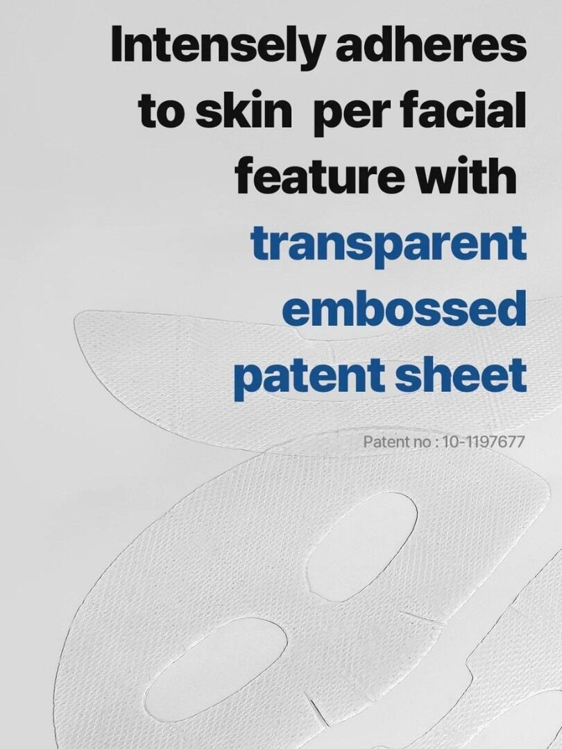 Το υλικό της υδρογέλης είναι πατενταρισμένο φύλλο υδρογέλης, υποαλλεργικό που παρέχει βέλτιστη πρόσφυση για βαθύτερη απορρόφηση των συστατικών και προσκολλάται εύκολα στο δέρμα.