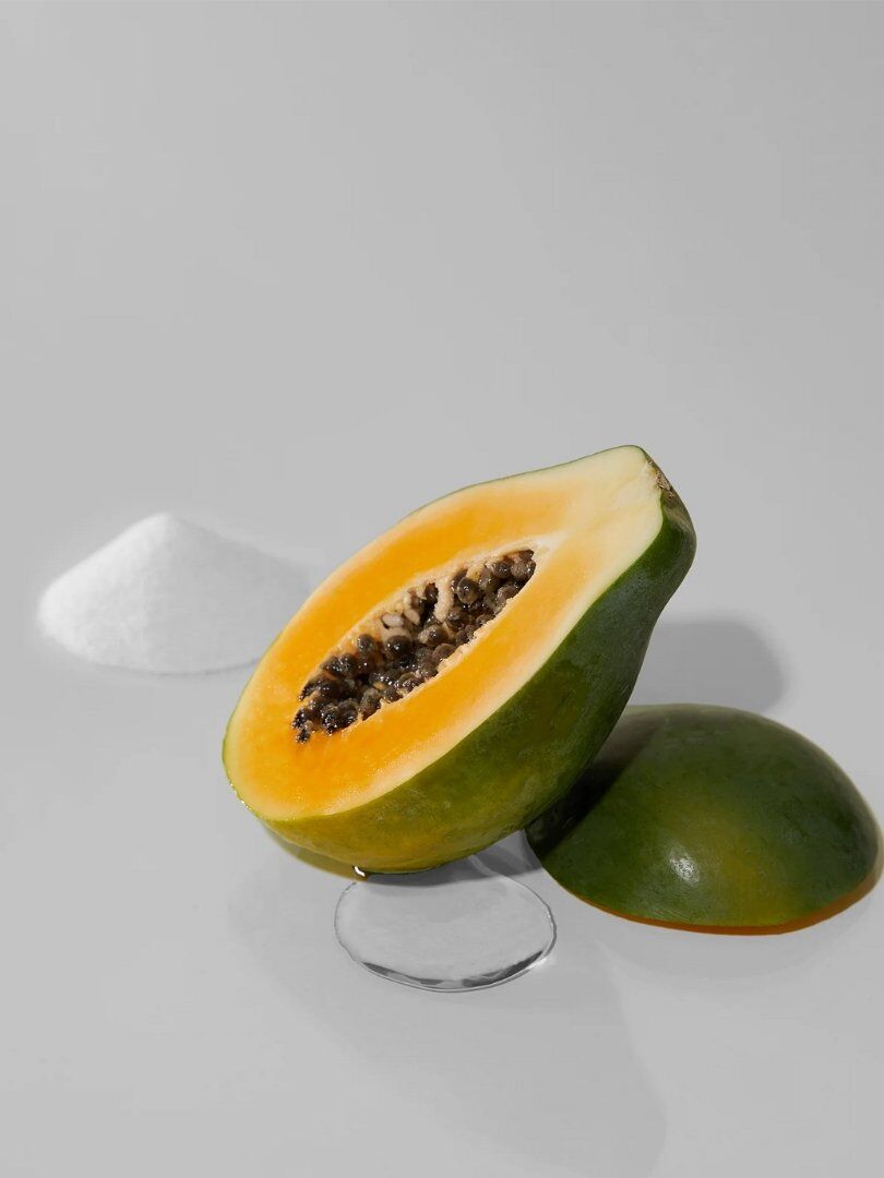 - Ένζυμο Παπάγιας: Φυσικό ένζυμο απολέπισης που απομακρύνει τα νεκρά κύτταρα, αφήνοντας το δέρμα λείο και λαμπερό.
