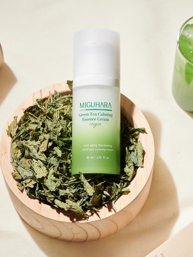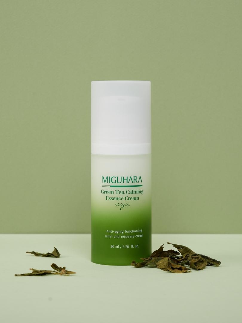 Η Miguhara Green Tea Calming Essence Cream Origin είναι μια λεπτόρευστη κρέμα τύπου essence εμπλουτισμένη με 54.000 ppm εκχυλίσματος πράσινου τσαγιού από το νησί Jeju της Κορέας που καταπραΰνει το ερεθισμένο δέρμα και προάγει την αναγέννηση του. Το πράσινο τσάι είναι γεμάτο με EGCG, ένα ισχυρό αντιοξειδωτικό που διορθώνει τις βλάβες και αναζωογονεί το δέρμα. Τα 4 είδη κεραμιδίων θρέφουν το δέρμα, ενισχύουν τον φραγμό της υγρασίας και διατηρούν το δέρμα ενυδατωμένο. Η κρέμα essence σχεδιάστηκε για να αφήνει μια ελαφριά αίσθηση στο δέρμα, χαρίζοντας ένα δροσερό και υγιές φινίρισμα.
