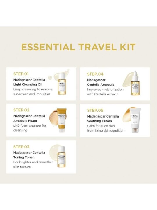 To Skin1004 Madagascar Centella Travel Kit είναι ιδανικό για όσους αγαπούν τα ταξίδια και το skincare. Περιέχει 5 hero προιόντα της Skin1004 για όσους θέλουν να δοκιμάσουν μια ολοκληρωμένη σειρά ή ακόμα καλύτερα για όσους θέλουν να έχουν πάντα μαζί τους την αγαπημένη τους ρουτίνα.