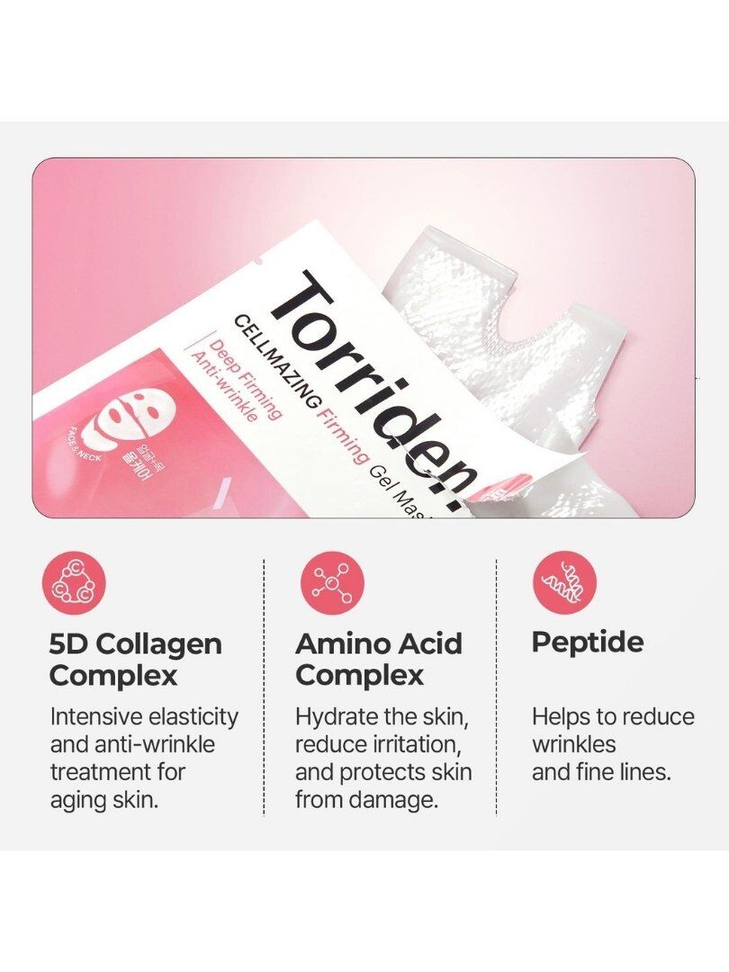 Η Torriden Cellmazing Firming Gel Mask είναι μια αντιγηραντική μάσκα ομορφιάς που υπόσχεται ελαστικό, σφιγηλό και νεανικό δέρμα άμεσα μετά την εφαρμογή της. Έχει υψηλή περιεκτικότητα σε πεπτίδια, κολλαγόνο και αμινοξέα, ενώ η σύνθεση της είναι ανάλαφρη και ταυτόχρονα παρέχει ενυδάτωση και σύσφιξη.