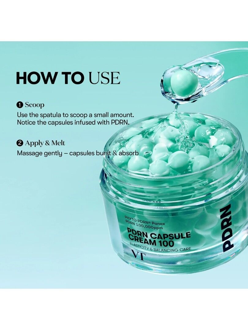 H VT PDRN Capsule Cream 100 είναι μια ανάλαφρη κρέμα-τζελ αποτελούμενη από πεπτίδια και vegan PDRN, ιδανική για όσους αγαπούν το λαμπερό αποτέλεσμα glass skin. Η μοναδική υφή της από κάψουλες PDRN σε ελαφριά υφή τζελ, είναι ελαφριά αλλά πλούσια, και καθώς οι κάψουλες λιώνουν στο δέρμα, αναζωογονούν τη φυσική σας λάμψη.