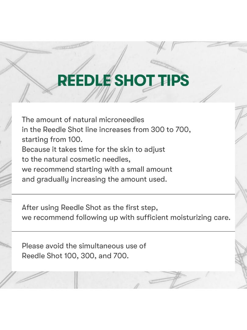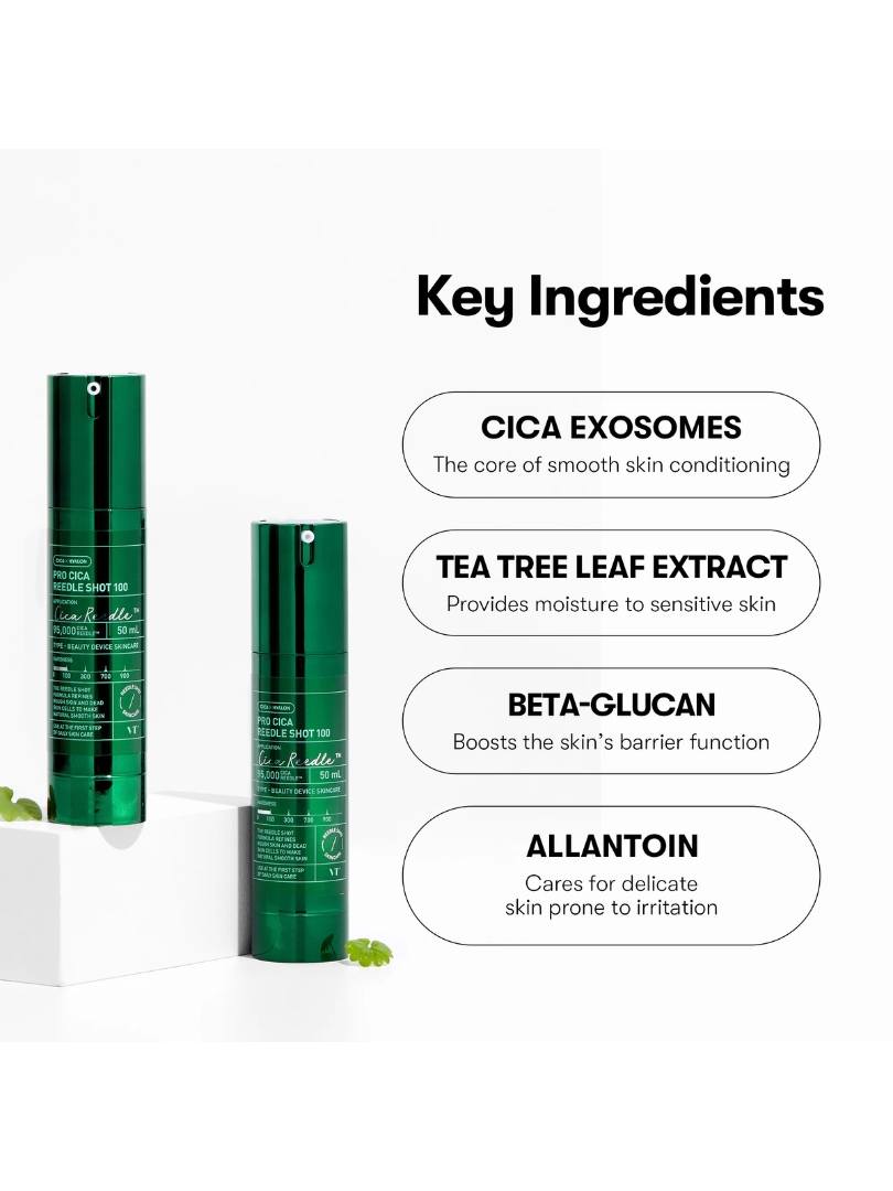 Μέρος της σειράς Pro Cica της VT, ο ορός VT Pro Cica Reedle Shot 100 είναι εμπλουτισμένος με Cicahyalon™ για καταπραϋντική και ενυδατική φροντίδα με βάση την centella aciatica. Άλλα συστατικά όπως τα Cica Exosomes, το εκχύλισμα φύλλων τεϊόδεντρου και η αλλαντοΐνη αφήνουν το δέρμα λείο και ελαστικό. Η φόρμουλα με μικροβελόνες Cica Reedle προάγει την βαθιά απορρόφηση των συστατικών περιποίησης και προσφέρει λείανση και ομοιόμορφο τόνο.