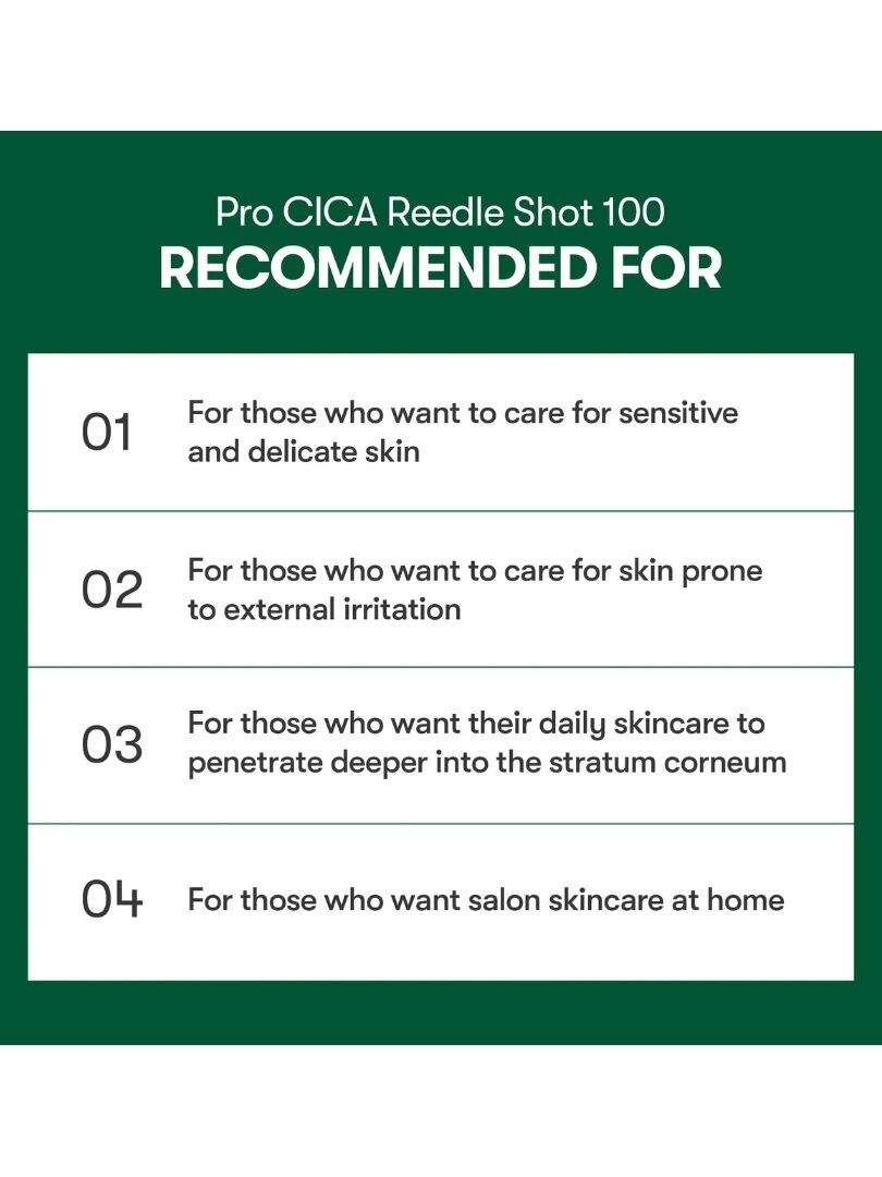 Μετά τον καθαρισμό του προσώπου σας και τη χρήση τόνερ, εφαρμόστε τον VT Pro Cica Reedle Shot 100,