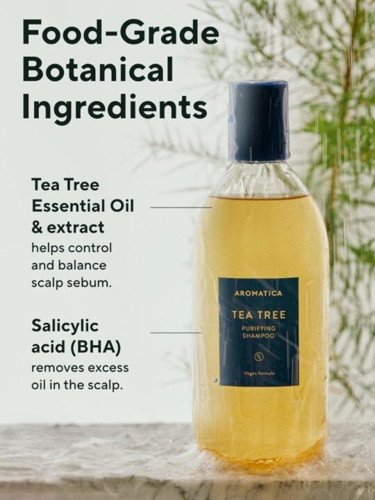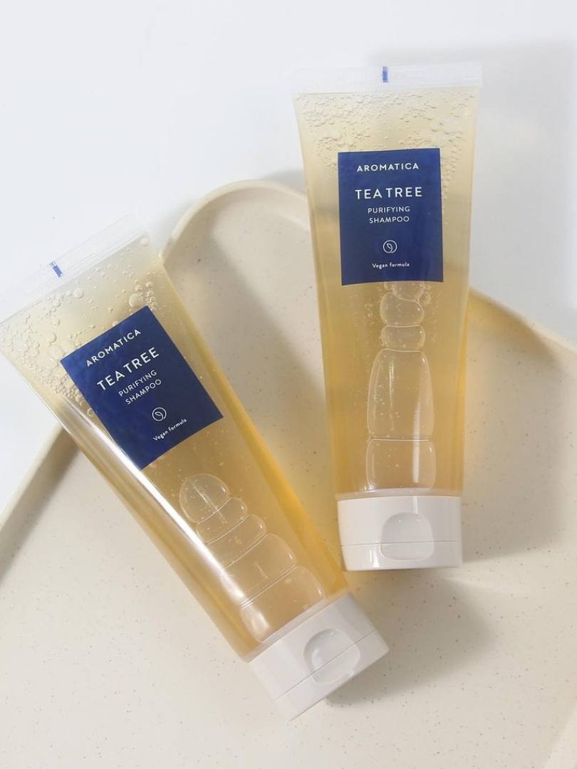 Aromatica Tea Tree Purifying Shampoo thoroughly cleanses excess sebum and helps prevent hair loss.