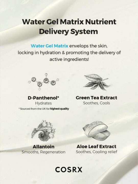 COSRX Green tea Aqua Soothing Gel Cream is a refreshing gel-type moisturizing cream that instantly soothes and calms stressed, irritated skin. It offers immediate hydration, has a non-greasy texture and is immediately absorbed. Leaves the skin soft and fresh.