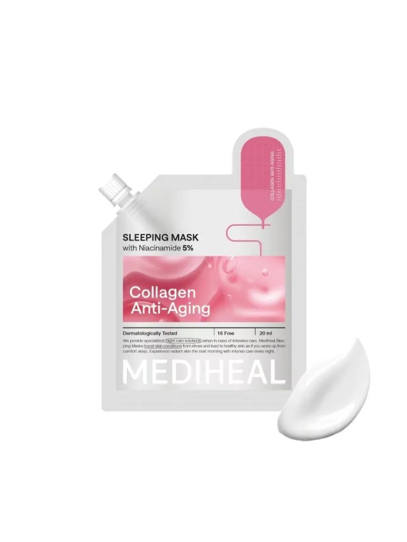 Η Mediheal Collagen Sleeping Mask είναι μια καινοτόμα μάσκα νυκτός, σχεδιασμένη να επαναφέρει τη νεανική όψη του προσώπου σας ενώ κοιμάστε. Εμπλουτισμένη με υδρολυμένο κολλαγόνο, ελαστίνη, προβιταμίνη B5 και ενυδατικούς παράγοντες, ενισχύει την elasticity and συσφίγγει την επιδερμίδα, μειώνοντας ορατά τις λεπτές γραμμές.
