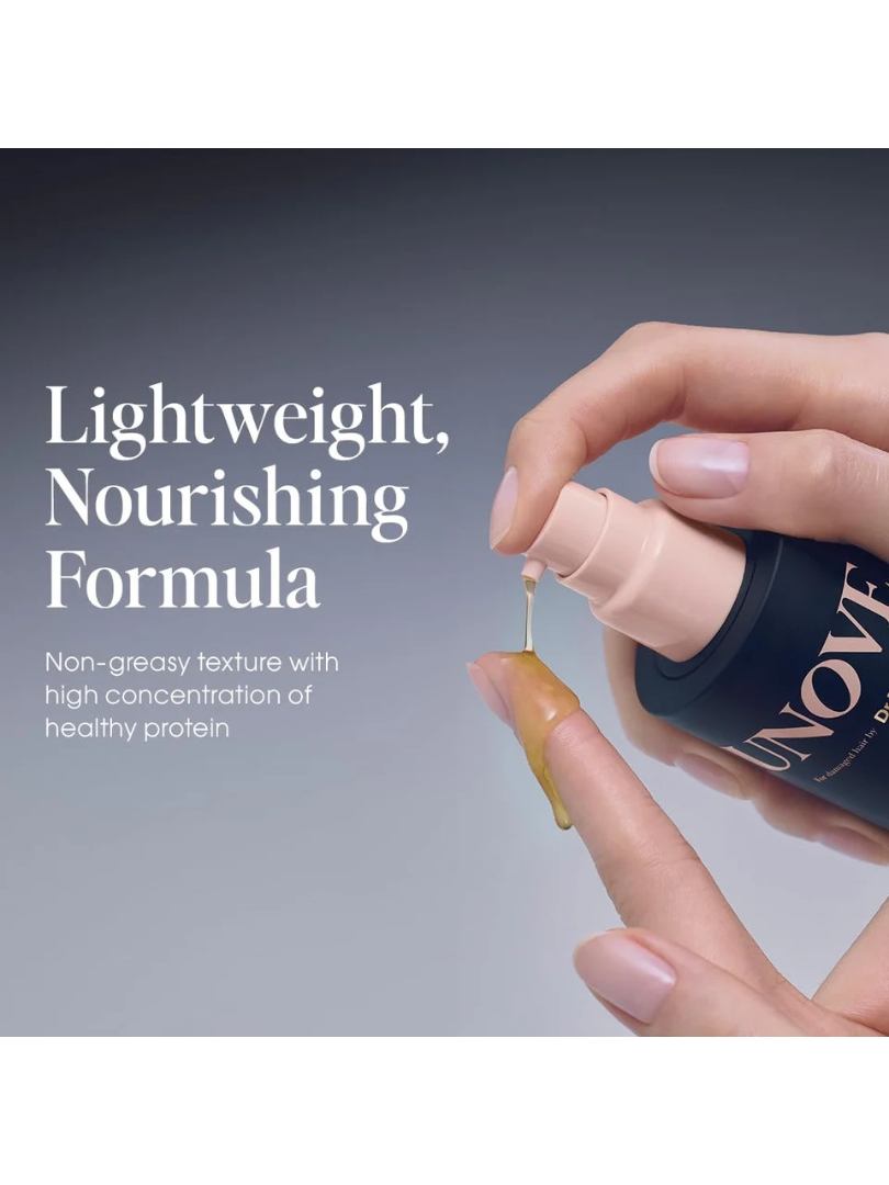 Το UNOVE Silk Hair Oil είναι ένας ορός μαλλιών με ελαιώδη υφή που λειαίνει και θρέφει την τρίχα. Η πλούσια σύσταση του θρέφει σε βάθος και είναι φιλική με το τριχωτό καθώς δεν περιέχει θειικά άλατα. Με υψηλή περιεκτικότητα σε κερατίνη και θρεπτικά έλαια, διανέμεται ομοιόμορφα στην τρίχα χωρίς να βαραίνει και παρέχει άμεσα θρεπτικά συστατικά στα τραχιά, εύθραυστα και ταλαιπωρημένα μαλλιά.
