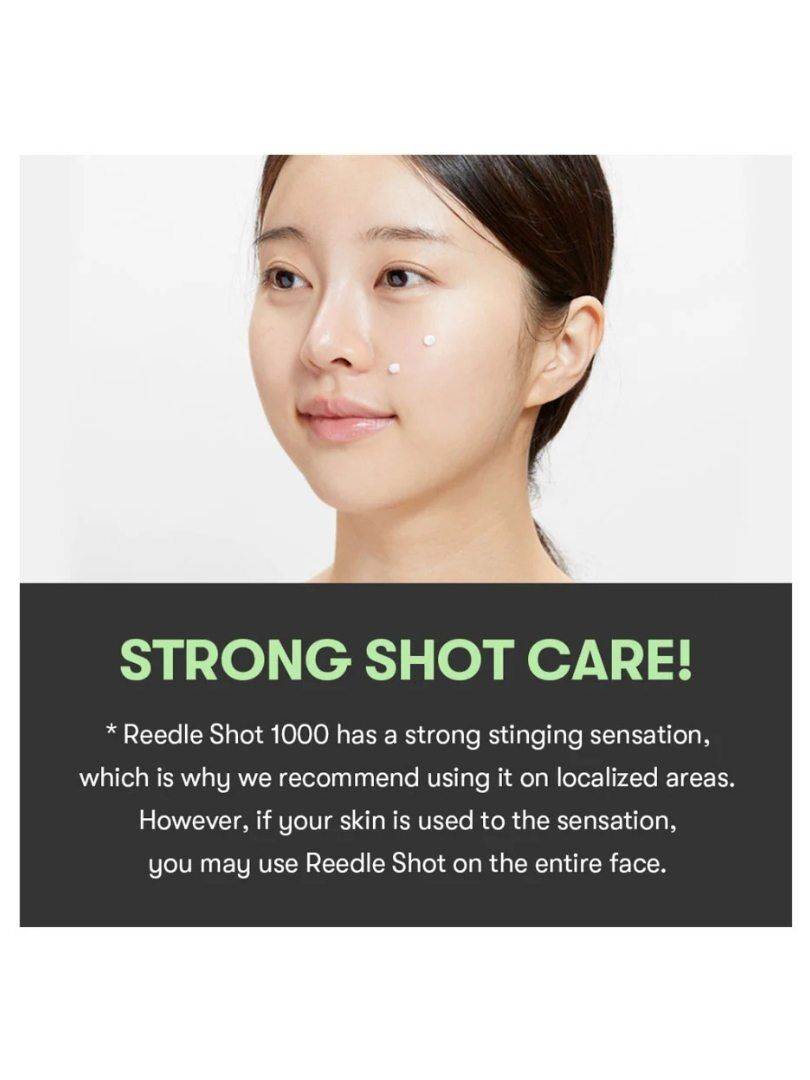 - Enhancing absorption: All products of the series reedle shot contain the innovative microneedle technology (microneedles), however, the Reedle Shot 1000 is designed to provide faster and more effective action. Micro-needle technology creates tiny channels in the skin, facilitating the penetration of active ingredients.