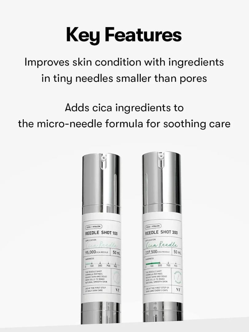 • Powerful action and reduction of use: VT Reedle Shot can be used every 3-5 days to achieve noticeable results, unlike Reedle Shot 100, which is recommended for daily use. Reedle Shot 300 is also effective as a topical treatment.